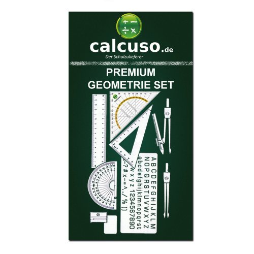 Calcuso Geometrie Set mit Zirkel, Geodreieck, Lineal, Buchstabenschablone und mehr in stabiler Metallbox 10 tlg.