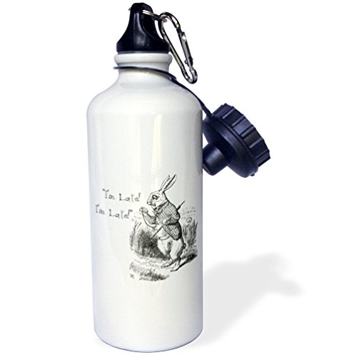 3dRose wb_193791_1 "Alice in Wonderland White Rabbit. Im Late-John Tenniel illustration" Sports Water Bottle, 21 oz, White