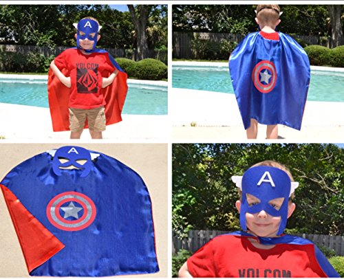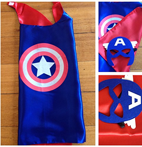 -. Binding : Kitchen -. Brand : SBK -. Color : Blue -. Department : unisex-child -. Feature : Lets make our little boys and girls our heroes!! / Double sided satin cape measuring approximately 27.6 inches and a durable felt mask / Durable well designed felt mask with a supper Batman sign / For toddlers 2-12 years of age. For Halloween, Christmas gifts, kids part and playing ground. / Velcro neck makes cape easy to put on and off -. Label : Sbk EnterP.R.Ise LLC -. Manufacturer : Sbk EnterP.R.Ise LLC -. MPN : 43222-2461 -. PartNumber : 43222-2461 -. ProductGroup : Toy -. ProductTypeName : HOME -. Publisher : Sbk EnterP.R.Ise LLC -. Size : medium -. Studio : Sbk EnterP.R.Ise LLC -. Title : SBK Dress Up Comics Cartoon Superhero Costume PJ Masks 3 Pack Captain America