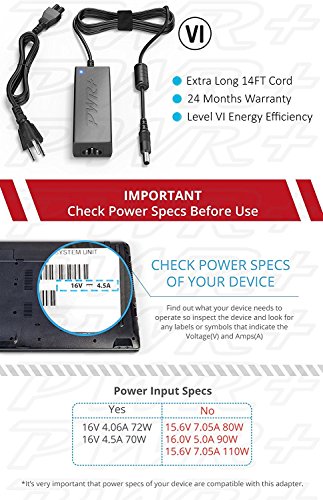 POWER SPECS : Output Max: 16V 4.5A 70W (72W) / Input Volt Range: 110-240V / Original Panasonic Charger Laptop AC Adapter Power Cord Replacement by PWR+