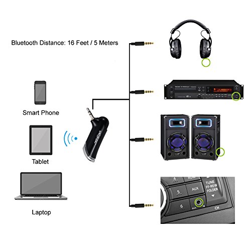 A good option if your car does not support Bluetooth; Enable your 3.5 mm audio jack headphone, mixing amplifier, speaker or home stereo system work with Bluetooth