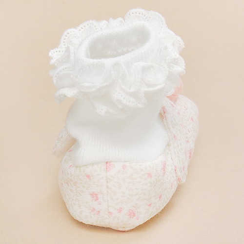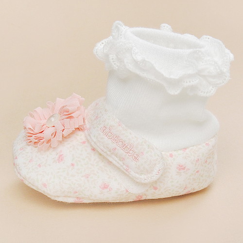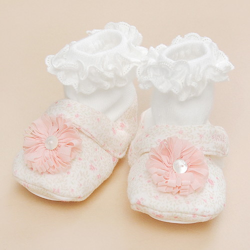 - 아기의 발을 부드럽게 감싸주어 보호해 주는 덧신입니다.- 순면을 소재로하여 자극 없고 촉감이 좋으며 플라워 패턴에 코사지 포인트로