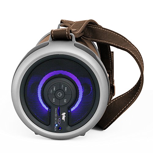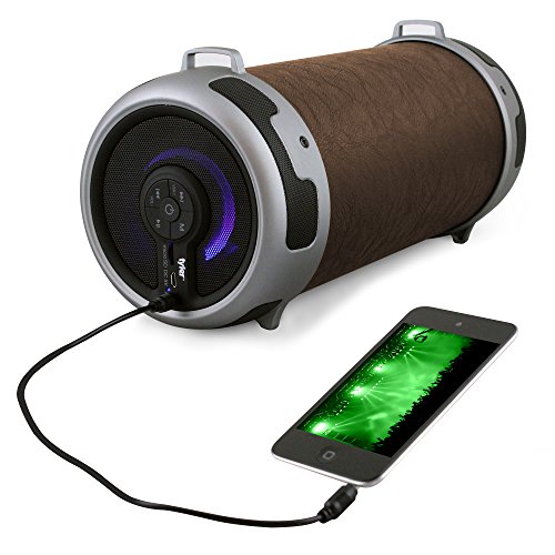 -. Title : Tyler Portable Wireless Bluetooth Stereo Cylinder Speaker with LED Light, Brown