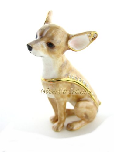 -. Title : Tan Chihuahua Dog Bejeweled Trinket Box