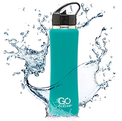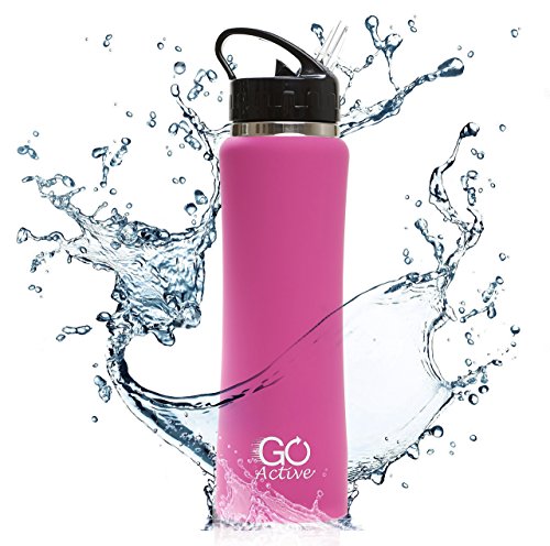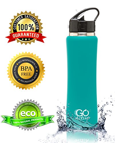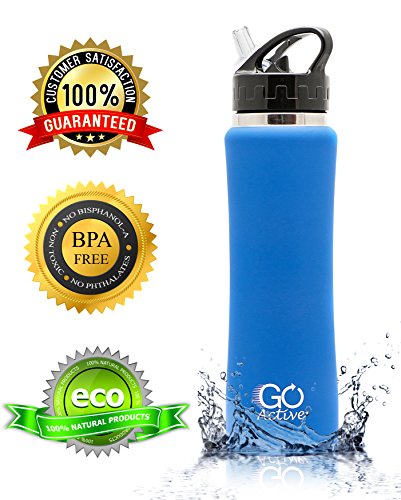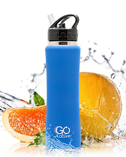 -. Title : Stainless Steel Insulated Water Bottle with flip straw and sweat-proof rubber grip. 24oz H2O Sports drinking bottle is Bpa Free Eco Friendly, Portable, Durable, Good for Kids, keeps ice over 20 hours