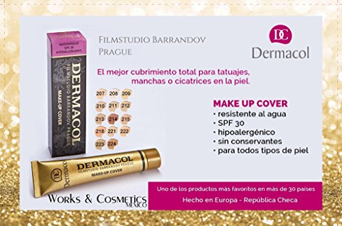 Dermacol Make-Up Cover Foundation 30g;Contains 50% pigments, which makes it a weapon against skin imperfections.;DERMACOL MAKE-UP COVER provides PERFECT COVERAGE even in thin layers.;It may be used on the entire face or body for color correction, darkening or lightening the skin tones.;Waterproof. Hypoallergenic. For all skin types. SPF 30. Preservative free.Feature