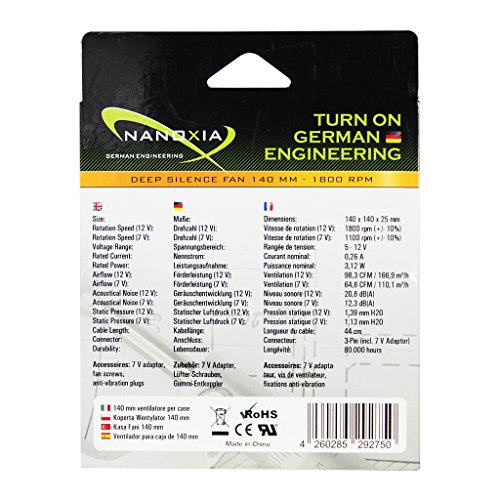 Nanoxia Deep Silence 140mm 1800rpm Fan Cooling, NDS140-1800