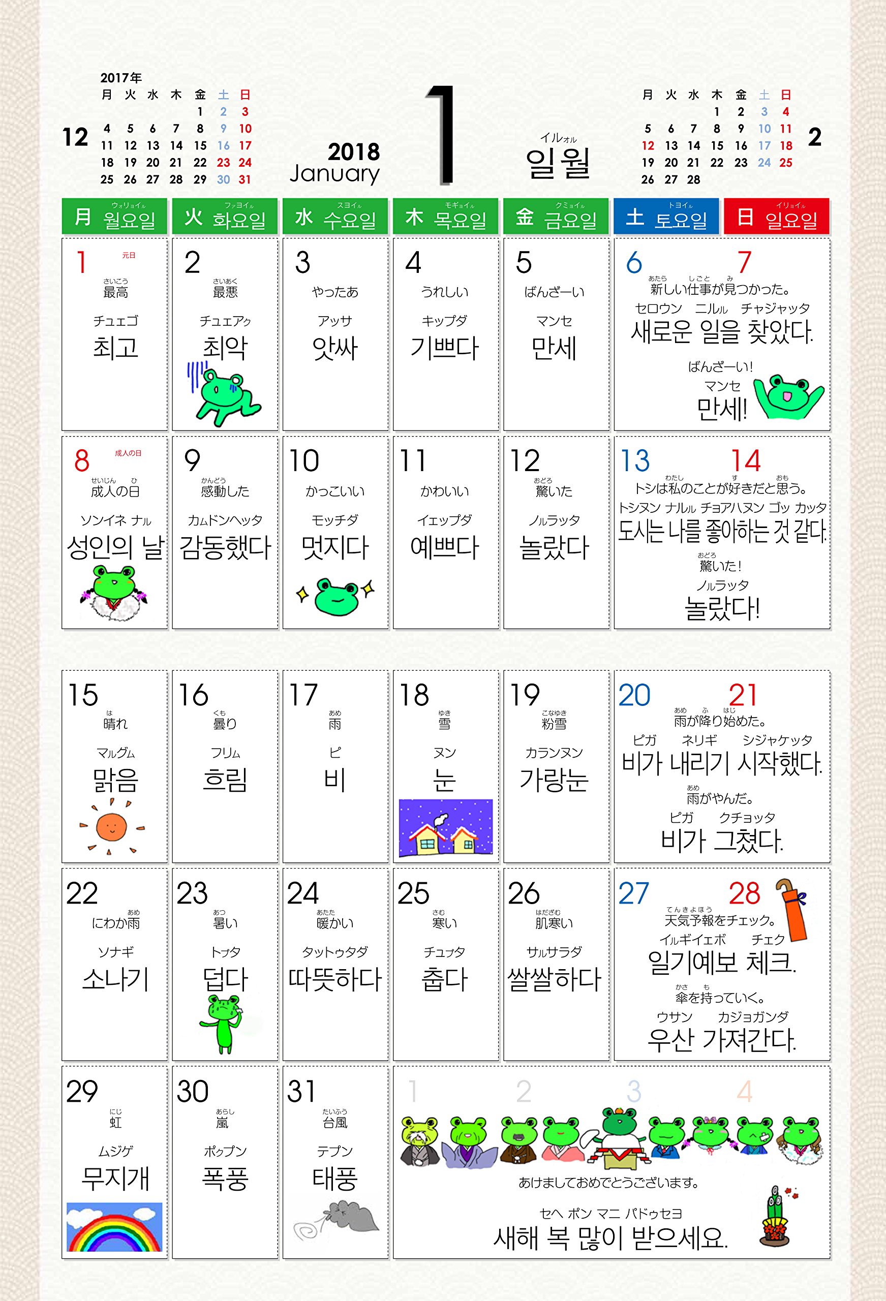 One word a day and a short sentence at the weekend, a little happy calendar every day.