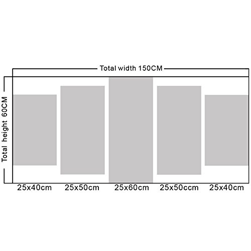 -. Feature : Size:10x16inchx2pcs,10x20inchx2pcs,10x24inchx1pcs(25x40cmx2pcs,25x50cmx2pcs,25x60cmx1pcs); 5 panels total: 50inch (Length) x 24inch (Height). / Merits: Canvas wall art wrapped on stretcher bars,Ready to Hang. Usually ships within 3 days; Registered Brand: KuyiArt by manufacturer Enjoy Canvas Art. / Material: Superior artist canvas; Kiln-dried wooden stretcher bars;Eco-friendly inks. / Quality: Brand name product---US Registered Brand: KuyiArt; High definition picture P.R.Inted by ink-jet P.R.Inting machine imported from Japan. / Characteristics: Waterproof,vivid color,fading-resistant,coating-protected; Special Attention: Due to different screen pixels, actual wall art colors may be slightly different from the product image;