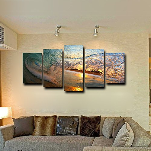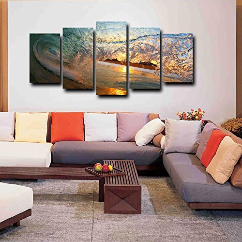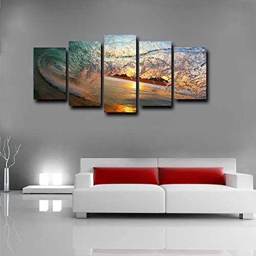 -. Title : KuyiArt- 5 Panels Canvas P.R.Int,Art P.R.Ints on Canvas, Framed and Stretched P.R.Ints for Home Decoration, Canvas Wall Art P.R.Ints, Giclee Canvas P.R.Inting, Waves and Sky,