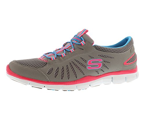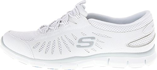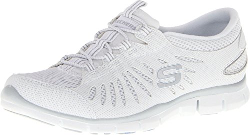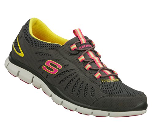 It's a no-brainer: the sporty style and lightweight comfort of the Skechers Gratis�Big Idea sneaker are brilliant. This women's casual sneaker offers the cool comfort and look of a micro-perforated synthetic leather and mesh upper accented with cutout details that also aid in the air-circulation cause. A stretchy front panel with bungee laces�and a fine webbing stripe to keep them centered�meets the easygoing, slip-on requirements, while the removable footbed keeps every step cushy with the help of the lightweight, low-profile, shock-absorbing midsole. A durable, flexible rubber outsole completes the grippy nonchalance of the Skechers Gratis�Big Idea slip-on.Feature