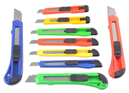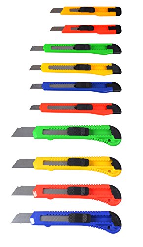 eZthings 10 Heavy Duty Box Cutters Openers Utility Knives with Snap off Blades (Variety Knife Set)