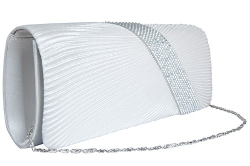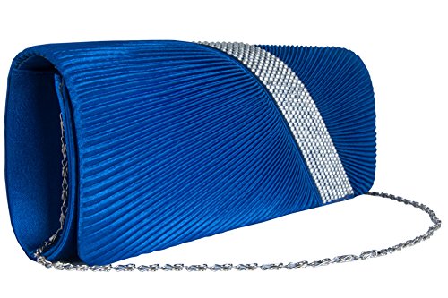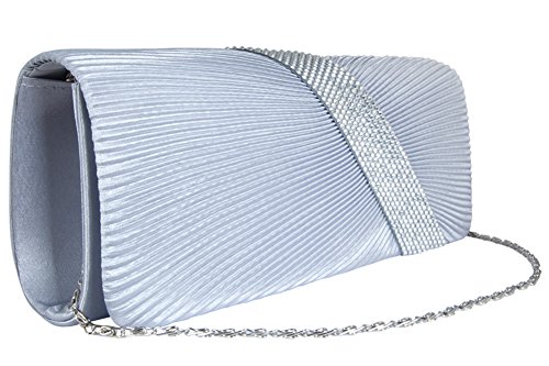 [Description] Material used : Satin Rhinestones/Diamantes Clutch with a silver chain attached/ Chain is Detachable Dimension : Length: 10.25`` X Width: 2`` x Height: 5.5`` Inside Pocket (one) Inside Pockect (one)