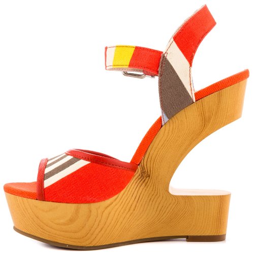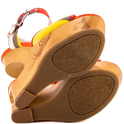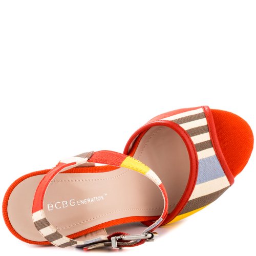 - Title : BCBGeneration Vendi Womens Size 9 Red Open Toe Canvas Wedge Sandals Shoes