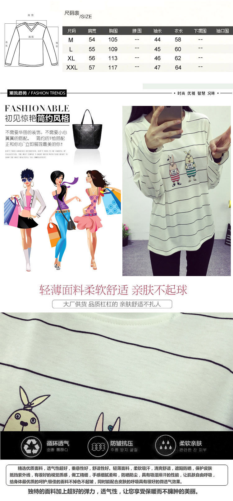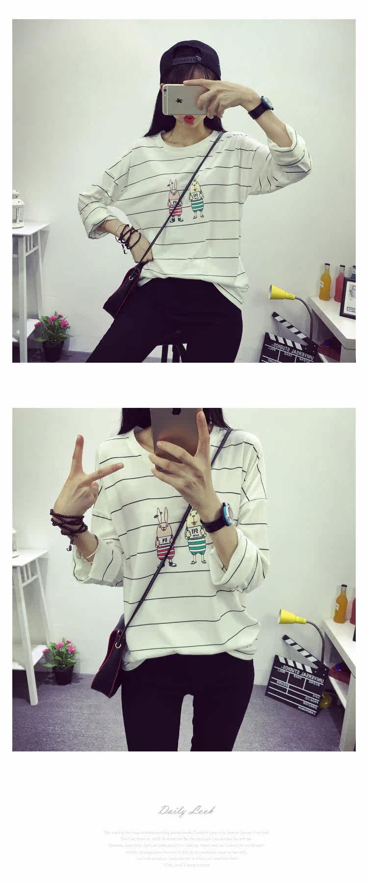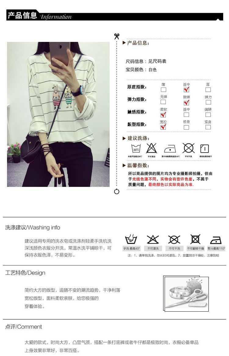 长袖T恤女2016秋冬新款韩版薄款棉质宽松时尚少女条纹体恤打底衫