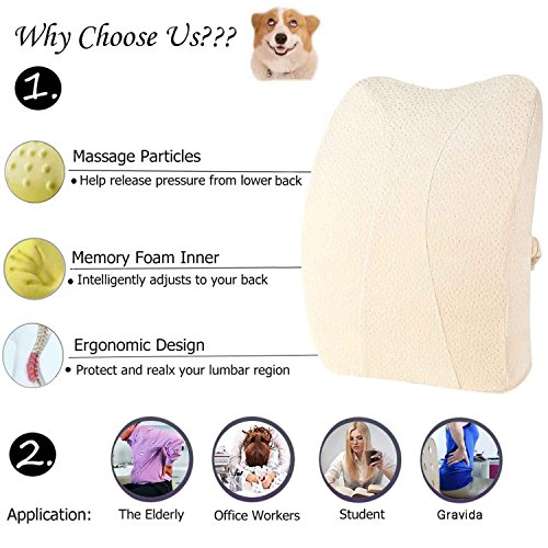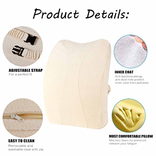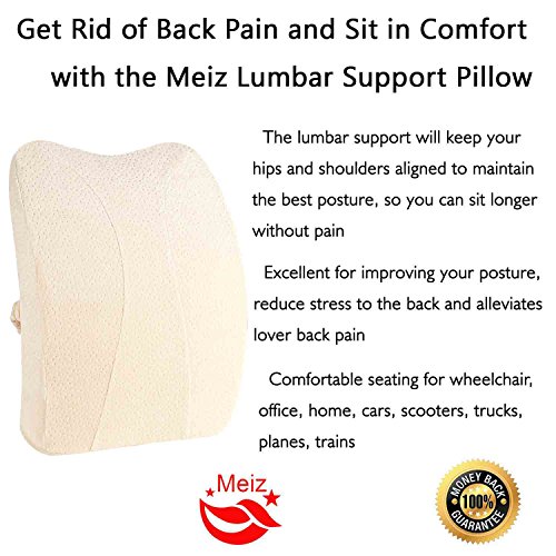 -. Feature : Mesh cover air permeable for maximum airflow - removable and machine washable / Specially shaped lumbar cushion fits between your back and the chair. Memory foam contours itself to your back for tailored lumbar support. / A great way to remove strain and pressure from your lower back muscles caused by slouching. The cushion promotes ergonomic desk posture by encouraging you sit straighter. / Bolstered sides help keep the wedge centered in your seat and your spine properly aligned. And take it with you to the office, use it at home, in your car, on planes, buses, and anywhere else you sit! / RISK NOTHING: Worried that you may not like it? Don't be! You can try the Meiz Orthopedic Lumbar Support pillow and if you don't like it you can return it no questions asked.