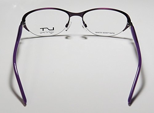 Brand: Lightec Style: 7037l Gender: womens Frame Type: half-rim Frame Material: metal plastic Case: original The frame is fully rx-able and can be fitted with prescription and/or tinted lenses at most optical stores. Please note that factory demo lenses have a logo stamped on them in ink. This frame provides comfortable fit and flatters a variety of face shapes. These eyeglasses are made of metal and high quality, durable acetate plastic. The frame has spring hinges. Spring hinge temples prevent you from stretching the fit of your glasses and ensure that they remain intact and not become loose or out of shape. Original case is included. These eyeglasses retail for $220.00 at upscale stores that carry designer frames. Save your money and get them here! The pictures cannot fully reflect the beauty of this piece of designer eyewear. These eyeglasses look even more elegant in real life. 0 |