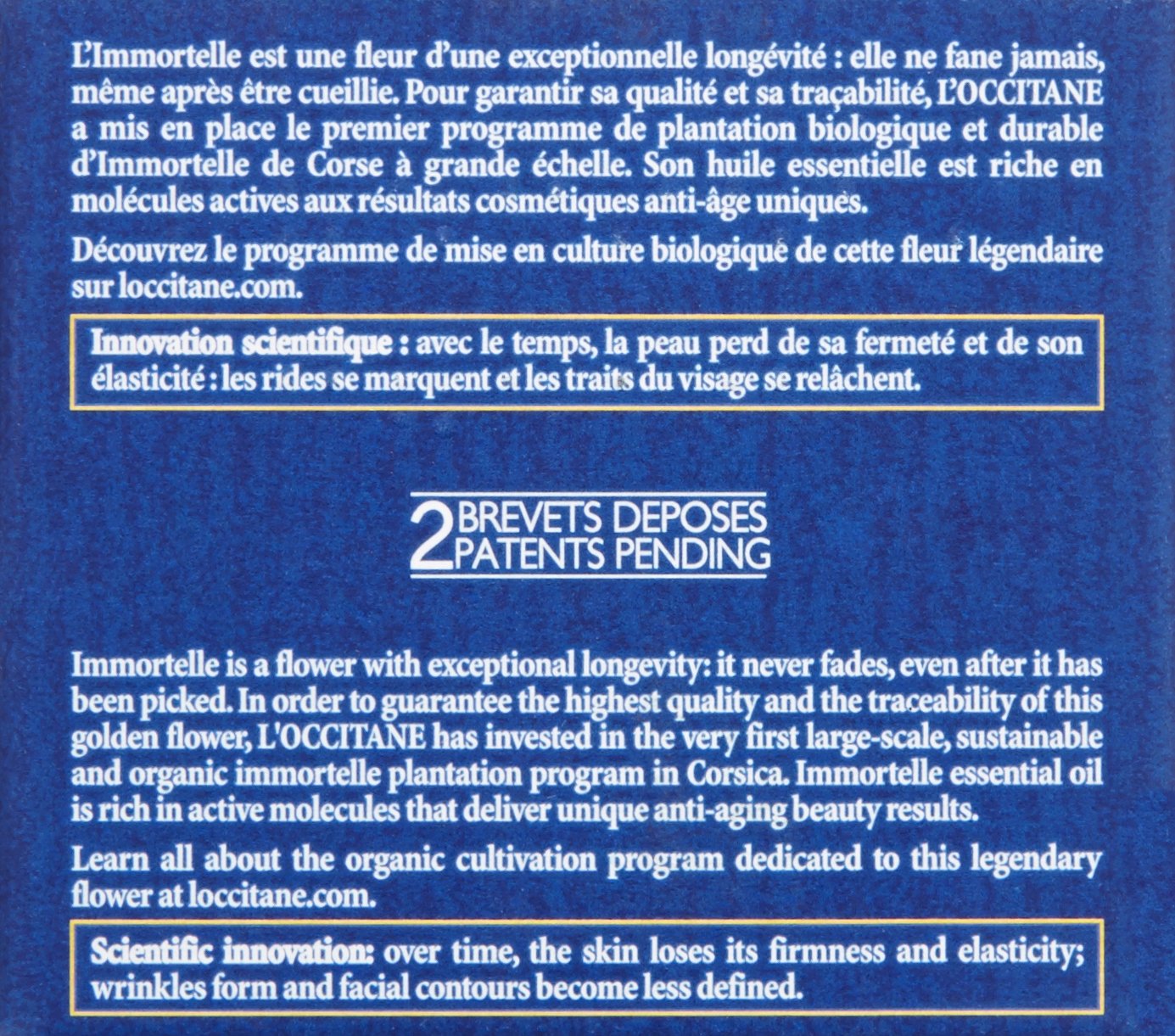 (* 1) Helicornum italicum flower oil, (* 2) shea butter (moisturizing ingredient)