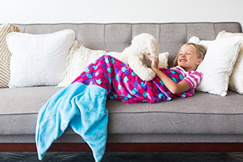 Super soft fleece makes this cuddly mermaid tail blanket perfect to slip into and snuggle on the couch, for sleepovers, for bed, or to give as the perfect gift