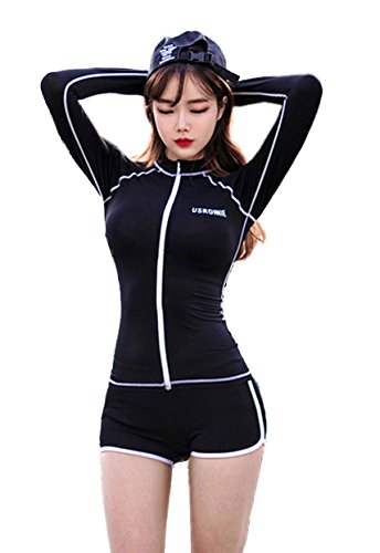 -. Feature : シンプルなブラック地に真っ白な縦ラインがスレンダーなラインを作ってくれる、クールでセクシーなラッシュガードです。 / 胸元のジッパーを開けると女性らしい大人っぽさを魅力的にアピールできます。 / また生地の伸縮性が非常に強く、余分な肉を引き締めて体のラインをシャープにみせてくれます。 / 体にフィットして水への抵抗力が強く、クラゲや日焼け対策にもばっちりです。 / 肘や肩は怪我しやすいところですので、長袖でしっかり守ります。