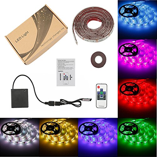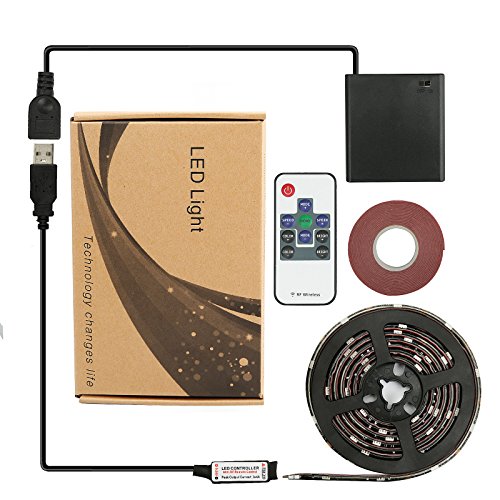 Bias LED Strip TV HDTV Light USB Battery Powered, RF Wireless Remote Control Indoor Background Lighting, Outdoor Decoration Accent Lights, 60 SMD 5050 RGB Lights with 3M Back Adhesive Tape, 6.56 Ft