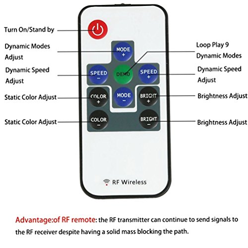 Upgraded RF wireless remote control the bias led lighting strips longer distance: wider angle and 8-10 meter distance receiving of the wireless RF remote controller to choose the color, brightness and the speed mode of the strip kit you favorite, it is very convenient to experience.