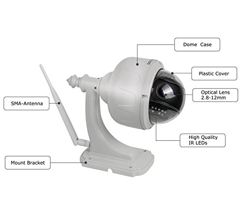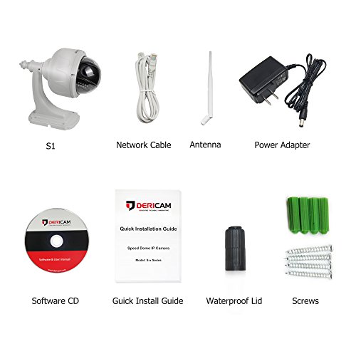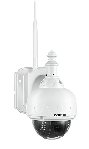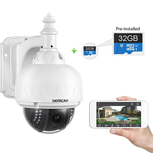 Dericam Outdoor WiFi IP Security Camera, PTZ Camera, 4x Optical Zoom, Auto-focus, 1.3 Megapixel, Pre-installed 32GB Memory Card, S1-32G White