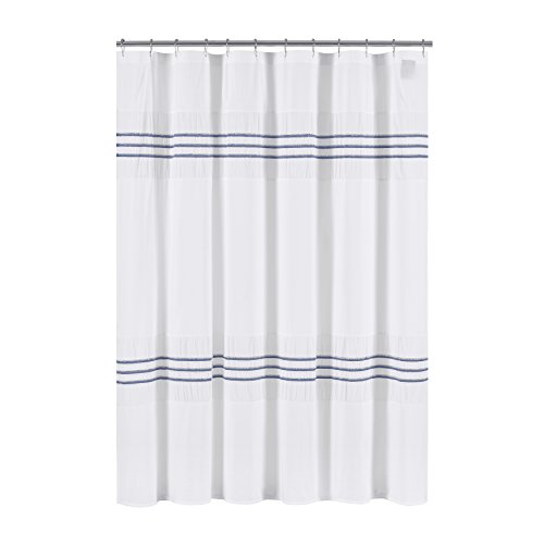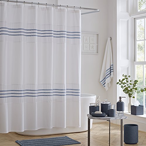Five Queens Court Laney 100% Cotton, Heather Stripe, Textured Shower Curtain, Blue