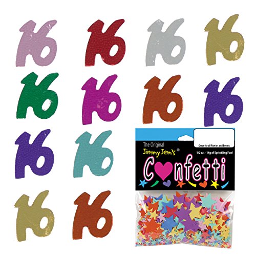 Studio : Z-Barten Productions Publisher : Z-Barten Productions Product Description Search Amazon for JIMMY JEMS CONFETTI FREE FREIGHT for over 500 Shapes and Colors of Confetti offered by Jimmy Jems. The inventor of Metallic Confetti over 30 years ago in Los Angeles. All our Confetti is shipped direct from our factory to you FREE FREIGHT by USPS Priority Mail. .. Alittle something about this Jimmy Jems Confetti Style. Celebrate your 16th, or your Sweet 16 event. Many great colors to choose. .. How many pieces of confetti per Half pound? The great unknown. As every confetti has it own shape and thus area and weight, we simply do not count. For example a 1/4 Square would weigh more than a 1/4" polkadot (circle), and of course a 1/2 Star, would weigh more than both. Then we have the mixed shape confetti that would never have the same exact proportion of shapes per each lb. Lastly, the weight of the material we use sometimes fluctuates. NIGHTMARE!!! So, we decided from the beginning to sell by weight and not by volume or piece. But, for this website, Jimmy instructed the crew in the back to come up with some numbers and here it goes. Remember - this is an estimate ONLY. In a half pound there are approximately 25,000 - 1/4 Polkadots, and 5,000 - 3/4 Stars 0