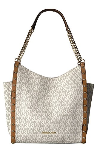 Binding : Accessory Product Description Grab hold of exceptional organization and modern polish for day to play with Michael Michael Kors' multi-compartment shoulder tote in luxe pebble leather. Medium sized bag; 14"W x 11-1/2"H x 5-1/2"D 11"L chain-detail double handles Snap closure Gold-tone exterior hardware logo 1 interior zip pocket, 5 slip pockets, 1 center zip compartment 1 center open compartment Pebble leather; lining: polyester 0