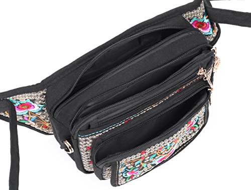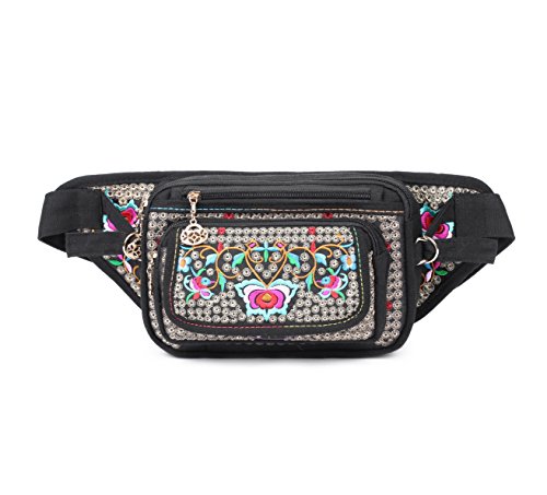 -. Binding : Apparel -. Brand : Hearty Trendy -. Color : Multi-color -. Department : womens -. Feature : Dimension: 10.5" (main pocket width) x 6" (h) x 5" (d) / 6 pockets total: 4 zippered pockets. Front pocket w/ magnetic button. 1 additional zippered pocket inside the main pocket. / Adjustable strap up to 50" waist / Four metal rings on the side, two on each side. / Lightweight -. Model : WP-002 -. ProductGroup : Shoes -. ProductTypeName : SHOES -. Size : Large -. Title : Hearty Trendy Folk Style Floral Pattern Embroidery Fanny Pack, Waist Pack