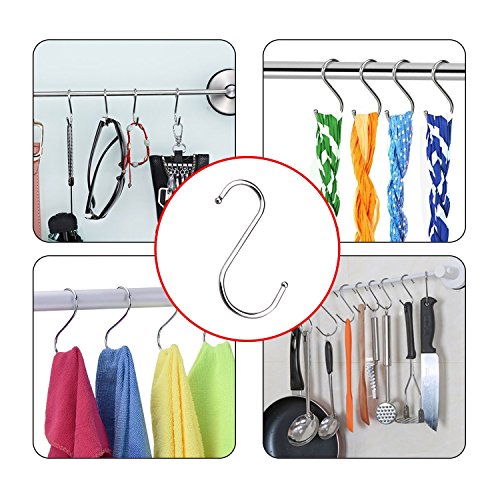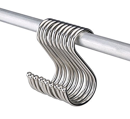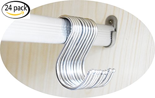 Youkwer 24 Pack Silver Stainless Steel S Hooks Metal Hanging S Hooks for Kitchen,Wardrobe pole,Work Shop, Bathroom and Garden (Medium 3 Inches)