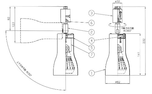 × height: 141 ● Weight (kg): 0.3 ● Main body color: Black ● Up / down movement: Approx. 90 degrees ● Rotation direction movement: Approx. 360 degrees ● Irradiated surface proximity limit: 10 cm ● Lighting duct only *