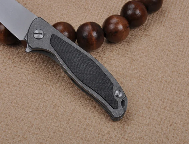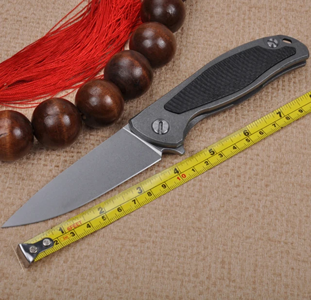 | [해외] 높은 품질 D2 블레이드 TC4 티타늄 합금 + 탄소 섬유 핸들 접는 나이프 유틸리티 전술 생존 야외 캠핑 도구 |