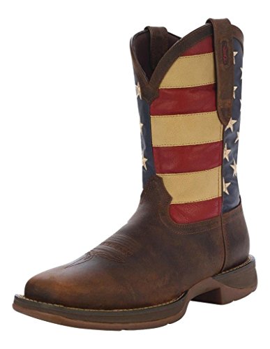 Studio : Durango Publisher : Durango Binding : Apparel Product Description Mens Durango Western Boots: All you have to do to show your patriotic spirit is pull-on these 12 inch? Rebel by Durango Western Boots. The look, level of comfort, and heel height are ideal for you! The foot and trim are made from oiled, dark brown full-grain leather. The square toe adds a very traditional flair to this Western boot. Yet, the focal point of this boot is the shaft, which proudly displays the American flag. Just because these Rebel by Durango boots are attention grabbing, doesn't mean that you will have to be uncomfortable. On the contrary, the footbed will provide cushioning, ease the weight of your steps and it circulates the air within these boots. As you are walking, you'll have more stability because this pull-on boot features a tempered steel shank. The double row welt stitching adds additional durability. Show how much you love your country in these Rebel by Durango Pull-On Flag Western Boots. Get your pair today! DB5554 0