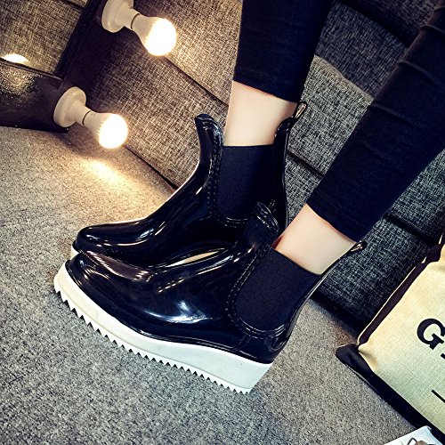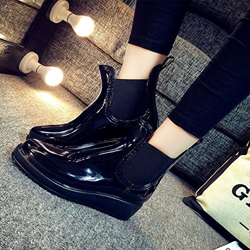 Binding : Apparel Product Description Women's Fashion Ankle Short Elastic Design Booties Chelsea Wedge Rain Boots Note: Please kindly compare below Size Chart with you feet length before ordering Size Chart: Label size 35- US5 - insole length 22.5CM Label size 36- US5.5 - insole length 23CM Label size 37- US6.5 - insole length 23.5CM Label size 38- US7 - insole length 24CM Label size 39- US7.5 - insole length 24.5CM Label size 40- US8 - insole length 25CM 0