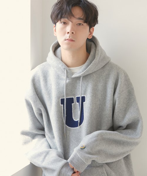 유니스디자인(UNIIS DESIGN) U 로고 프리스 후디_그레이