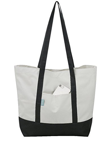 Reusable Shopping Bag, Handbags, 2 Coin Pockets,Thick Oxford Fabric, long Lifespan Use, Enough Length Handles to putting over shoulders, Washable, Beige, 1 pcs