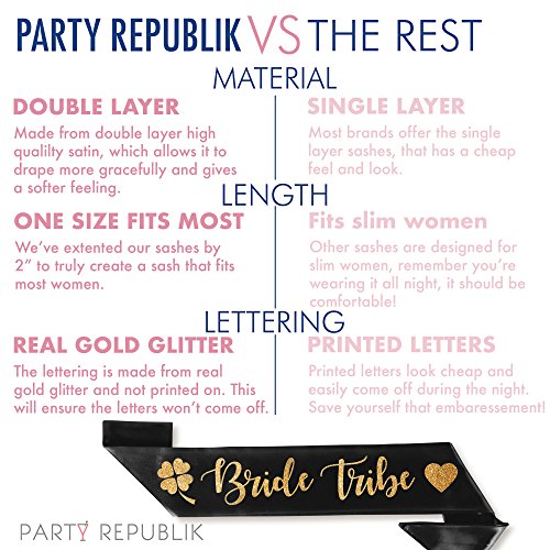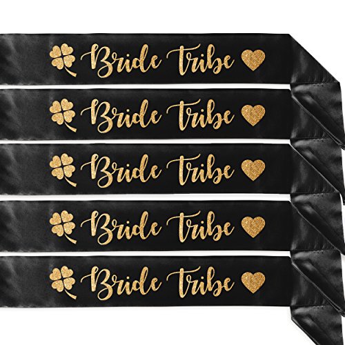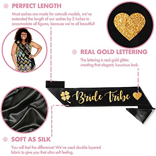 Bachelorette Party Bride To Be Sash - Bridal Shower Hen Party Wedding Decorations Favors Accessories (White with Gold Glitter) … (5 Bride Tribe, Black...
