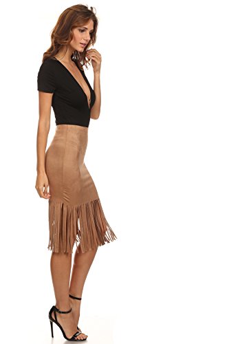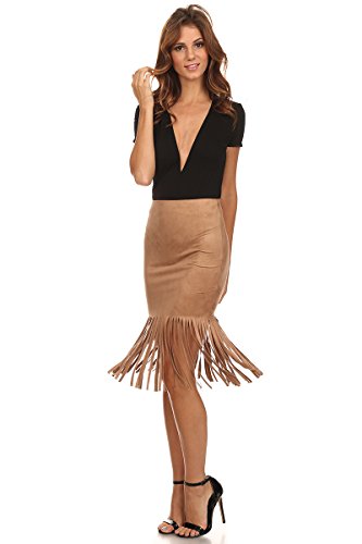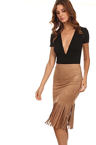This faux suede skirt is fun and flirty with a bodycon fit and long fringed hem. Perfect to pair with any top, you need this skirt for your summer wardrobe! DETAILS (Measured from Small): - Waist: 24" - Hip: 30" - Body Length: 16" without fringe - Fringe Length: 10" - Color: Taupe 0 |