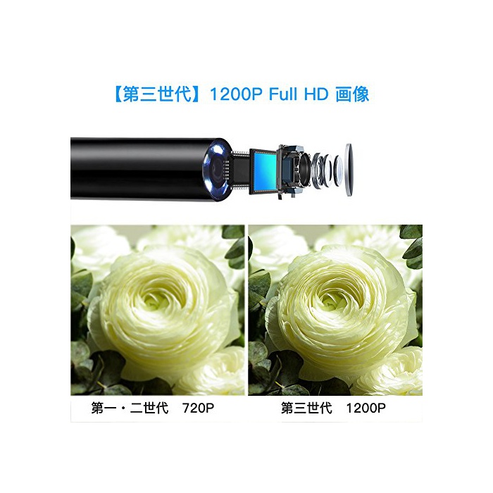 【특징】소형 경량,휴대 편리,사용하기 쉽고, 방수 카메라 헤드(방수 방진:IP68)고, 스크린 쇼트 가능,녹화 가능,동기 정보 내용 재생,IOS/Andrews/PC도 대응 성과,HD1200P의 고해상도의 비디오 품질,어두워 좁은 곳도 대응에서 옵니다.