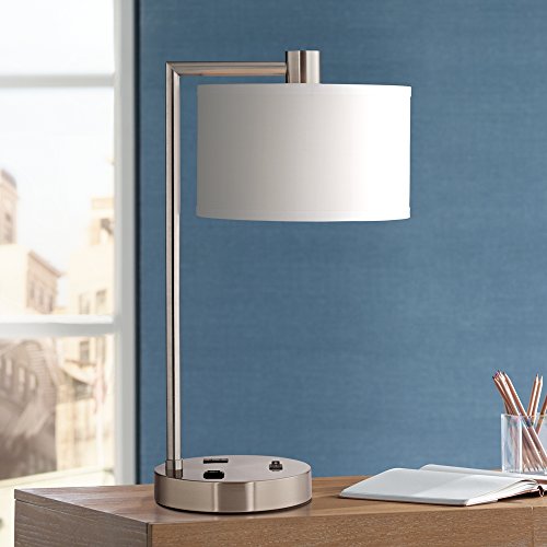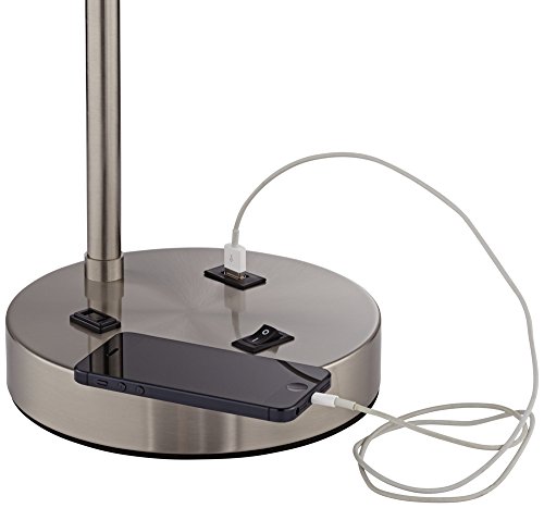 -. Title : Colby Brushed Nickel Desk Lamp with Outlet and USB Port