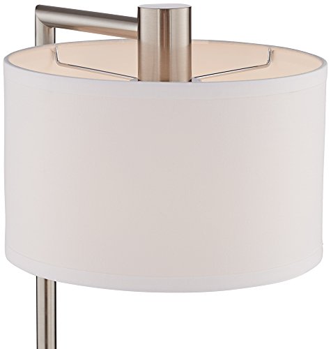 -. Feature : Workstation desk lamp with built-in outlet and USB port. / 2.0-A type USB port. / Brushed nickel finish, linen drum uno shade. / Maximum 150 watt or equivalent bulb (not included). / 23" high x 8" diameter base.