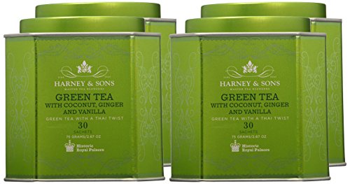 -. Title : Harney & Sons Green Tea w/ Coconut, Ginger & Vanilla (30ct Sachets) (Pack of 4)