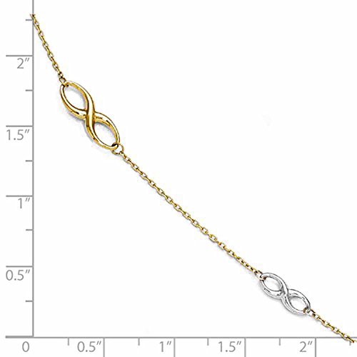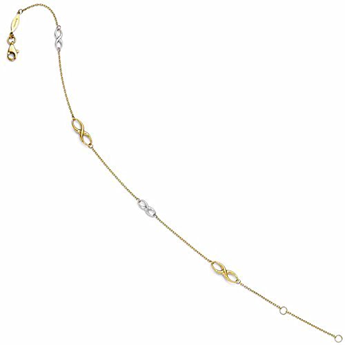 14k Gold Two Tone Infinity Anklet 9 Inches plus 1 Inch Extender with Lobster Clasp.