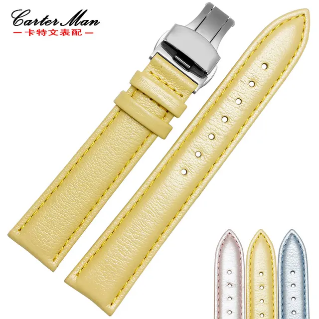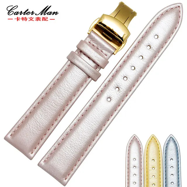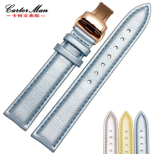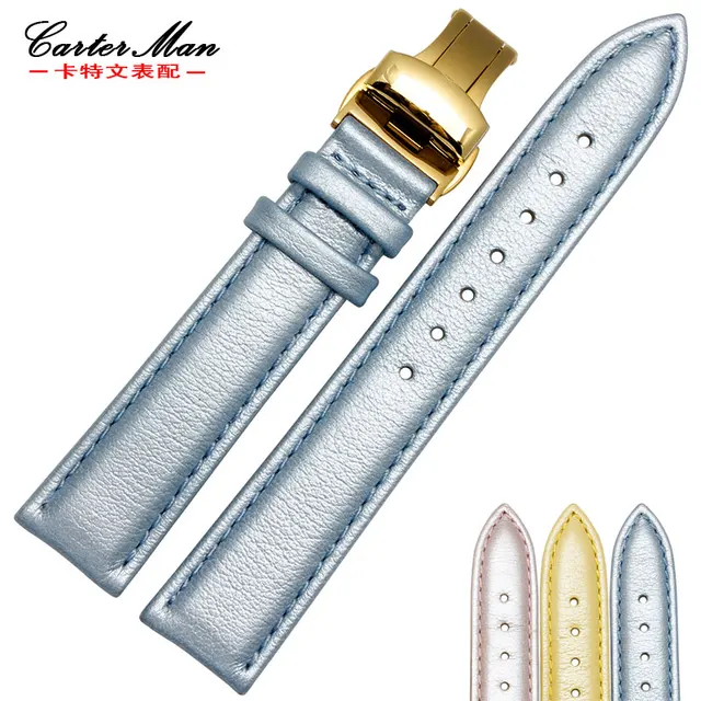 [해외] 새로운 높은 품질 14 미리메터 16 미리메터 18 미리메터 20 미리메터 손목 시계 정품 가죽 스트랩 스테인레스 스틸 버클 여성 시계 팔찌