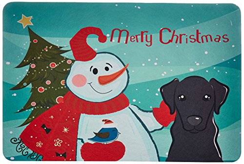 Caroline's Treasures BB1855JCMT Snowman with Black Labrador Kitchen or Bath Mat, 24 by 36", Multicolor