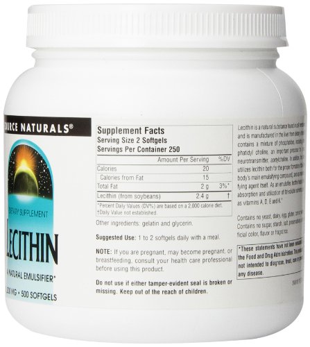 Source Naturals Lecithin 1200mg, A Natural Emulsifier, 500 Softgels