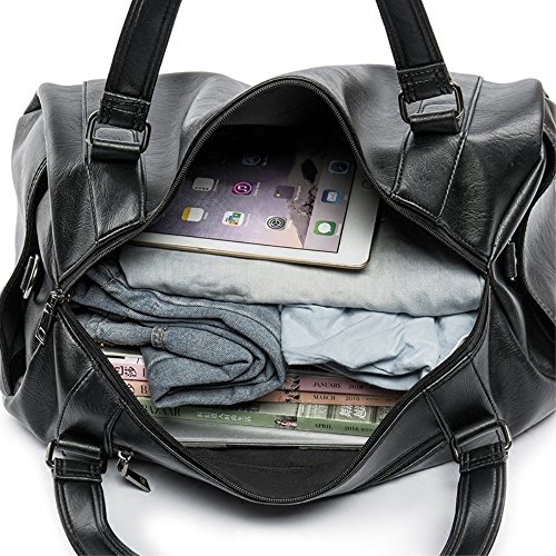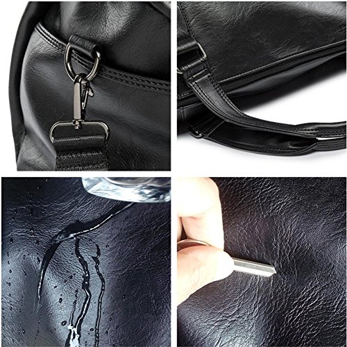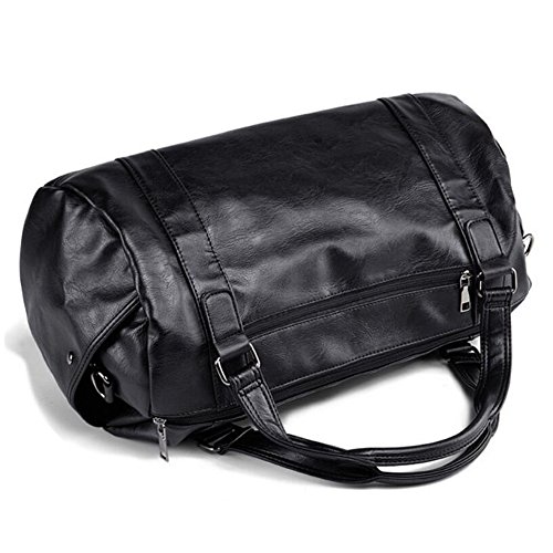 -. Title : Men PU Leather Handbag Totes Travel Weekender Duffel Bag Black
