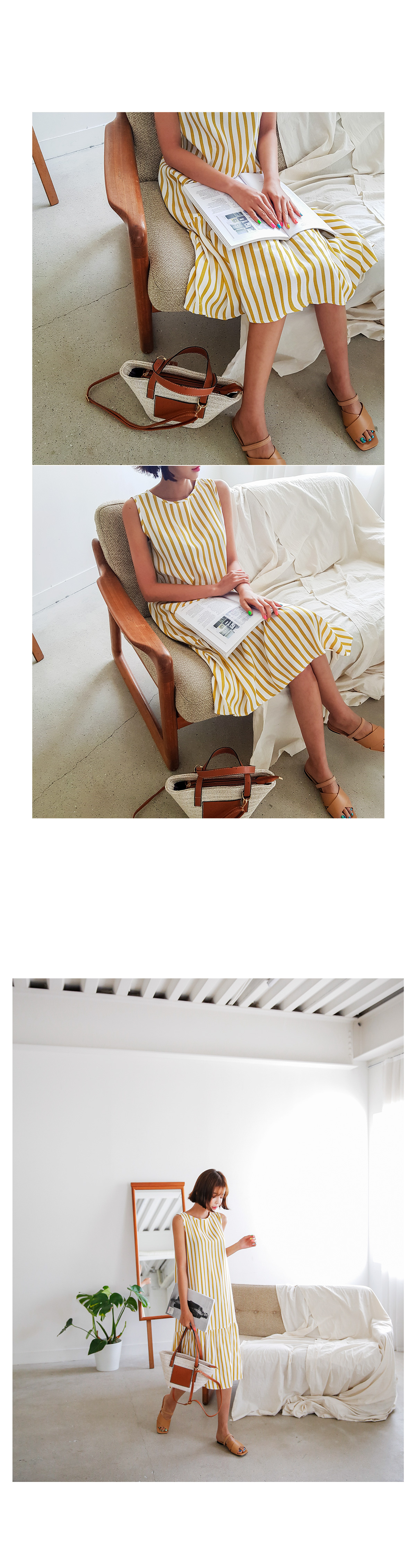 鮮やかなカラー感のストライプ・ワンピース紹介します。
